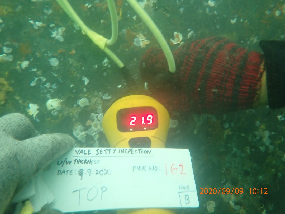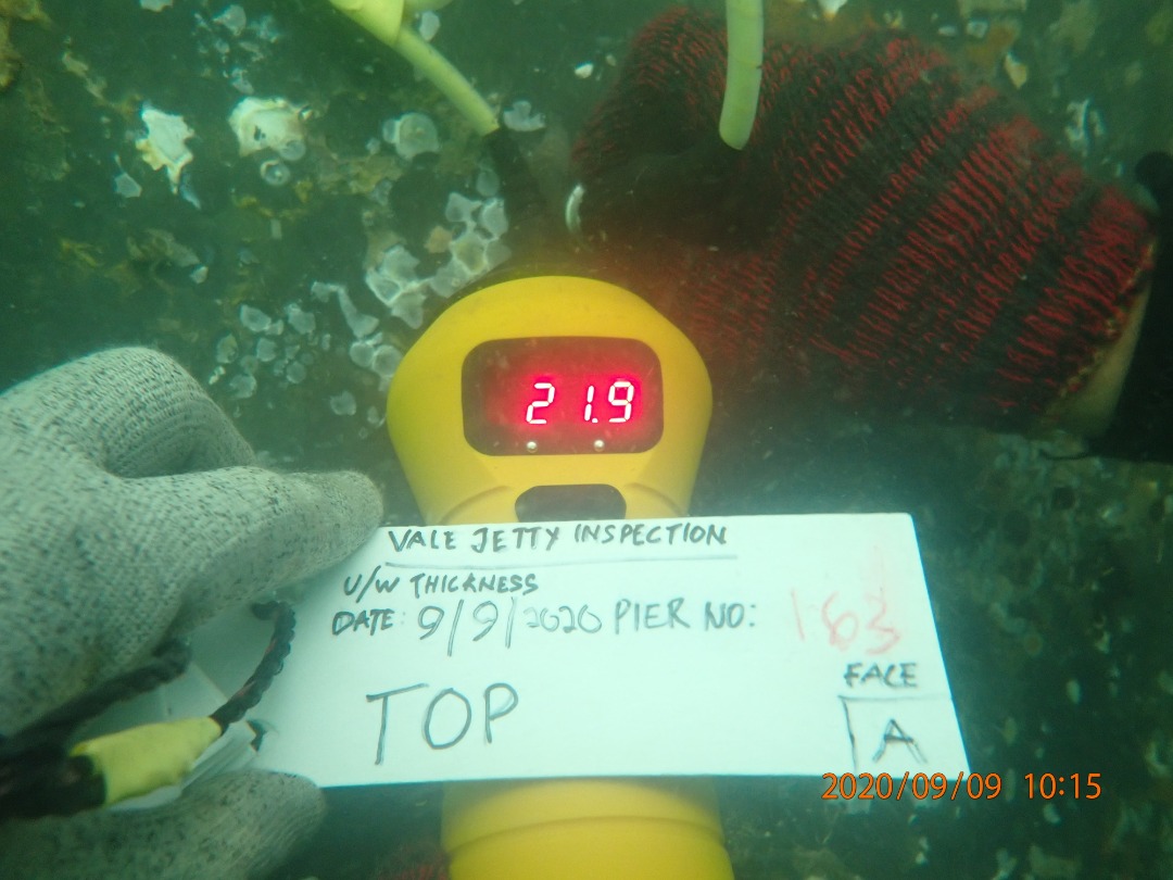 Underwater steel piles paint thickness measurement using Ultrasonic Tester.